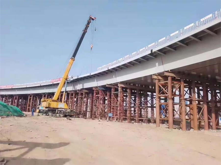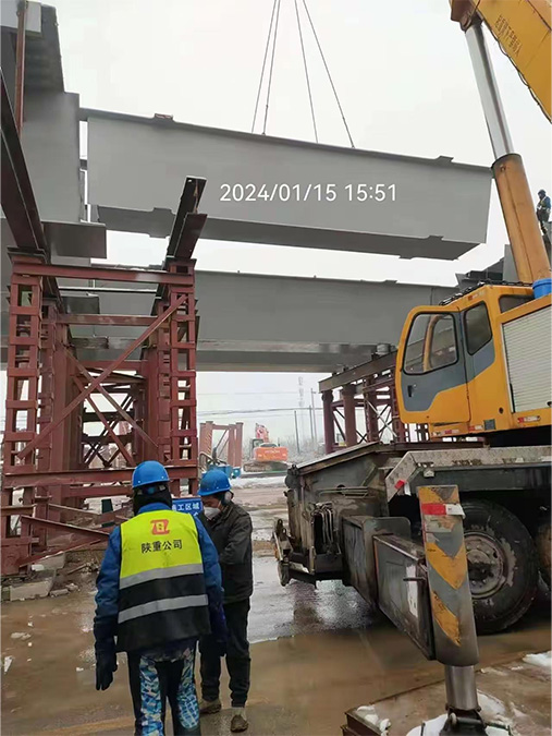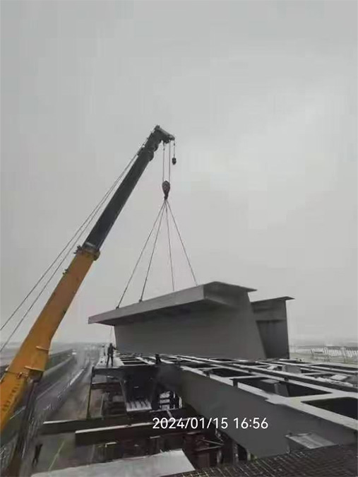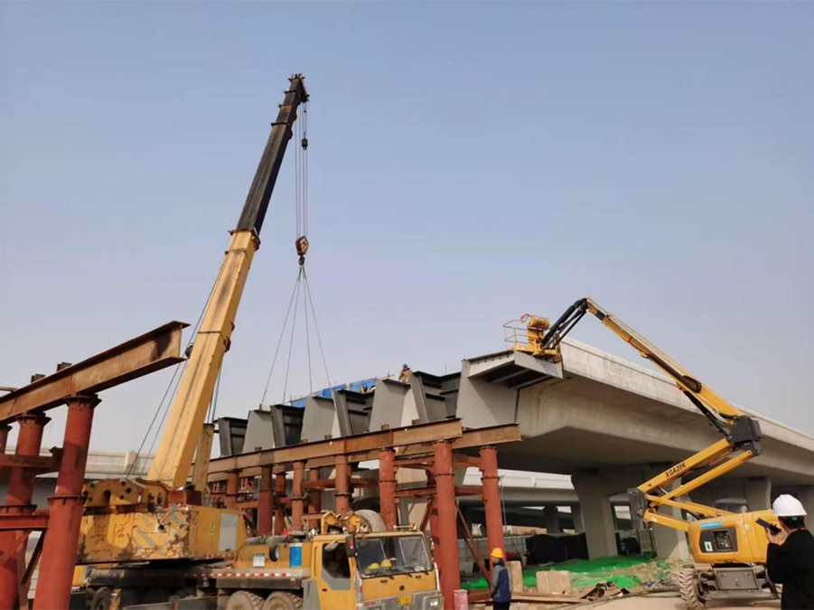 陜西重型機(jī)械制造有限公司承擔(dān)的航站樓出場道路高架橋項(xiàng)目中的400多塊鋼箱梁,其中50%以上的鋼箱梁為新式疊合梁,該疊合梁的結(jié)構(gòu)復(fù)雜程度和單件重量以及多變的外形,為陜重公司的首次加工和安裝,技術(shù)難度大。該項(xiàng)目的參建,對(duì)陜重公司鋼結(jié)構(gòu)橋梁的制作和安裝具有劃時(shí)代意義。